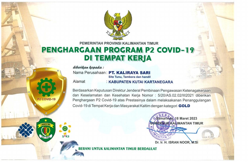 "Penghargaan Program P2 Covid-19 di Tempat Kerja"