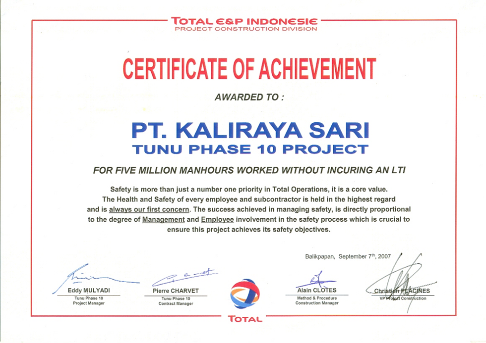 "10 Million Manhours Without LTI Achievment"