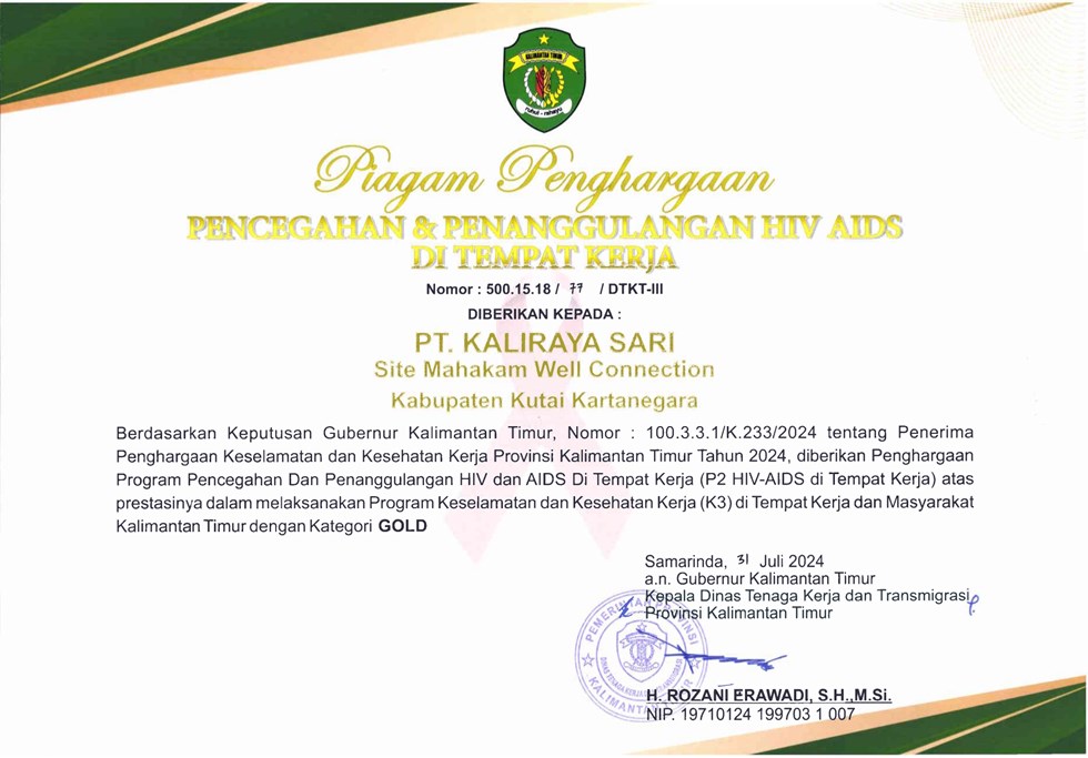 "Penghargaan Program P2 HIV & AIDS di Tempat Kerja"