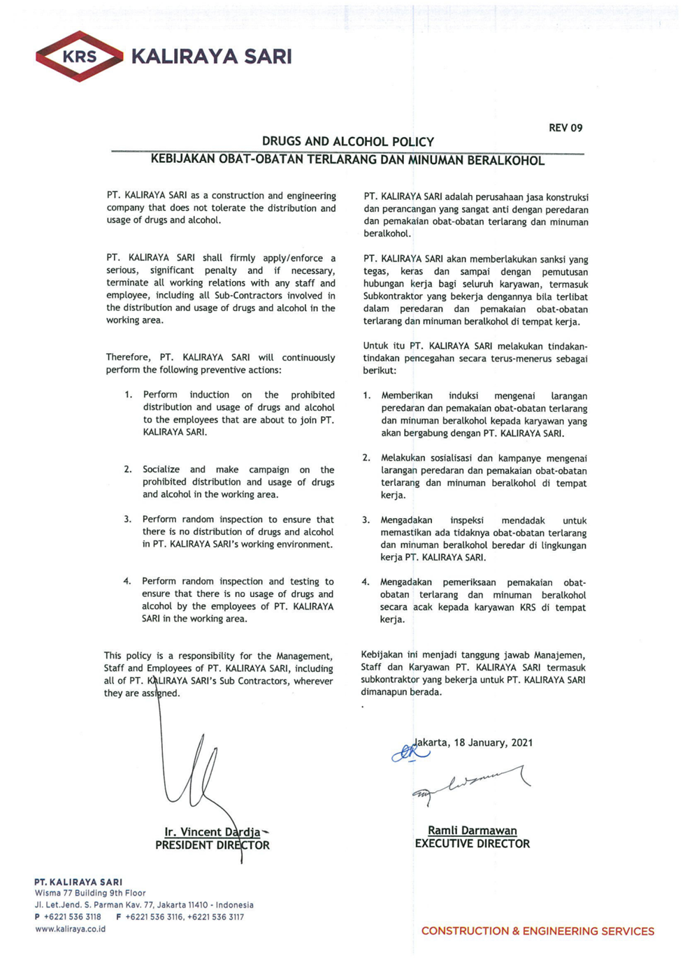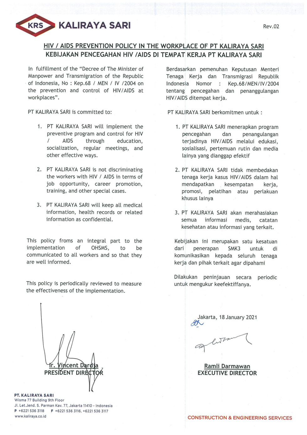 HIV / AIDS Prevention Policy in the Workplace of PT. Kaliraya Sari