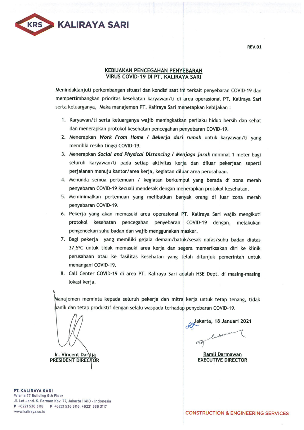 Kebijakan Penecegahan Penyebaran Virus Covid-19