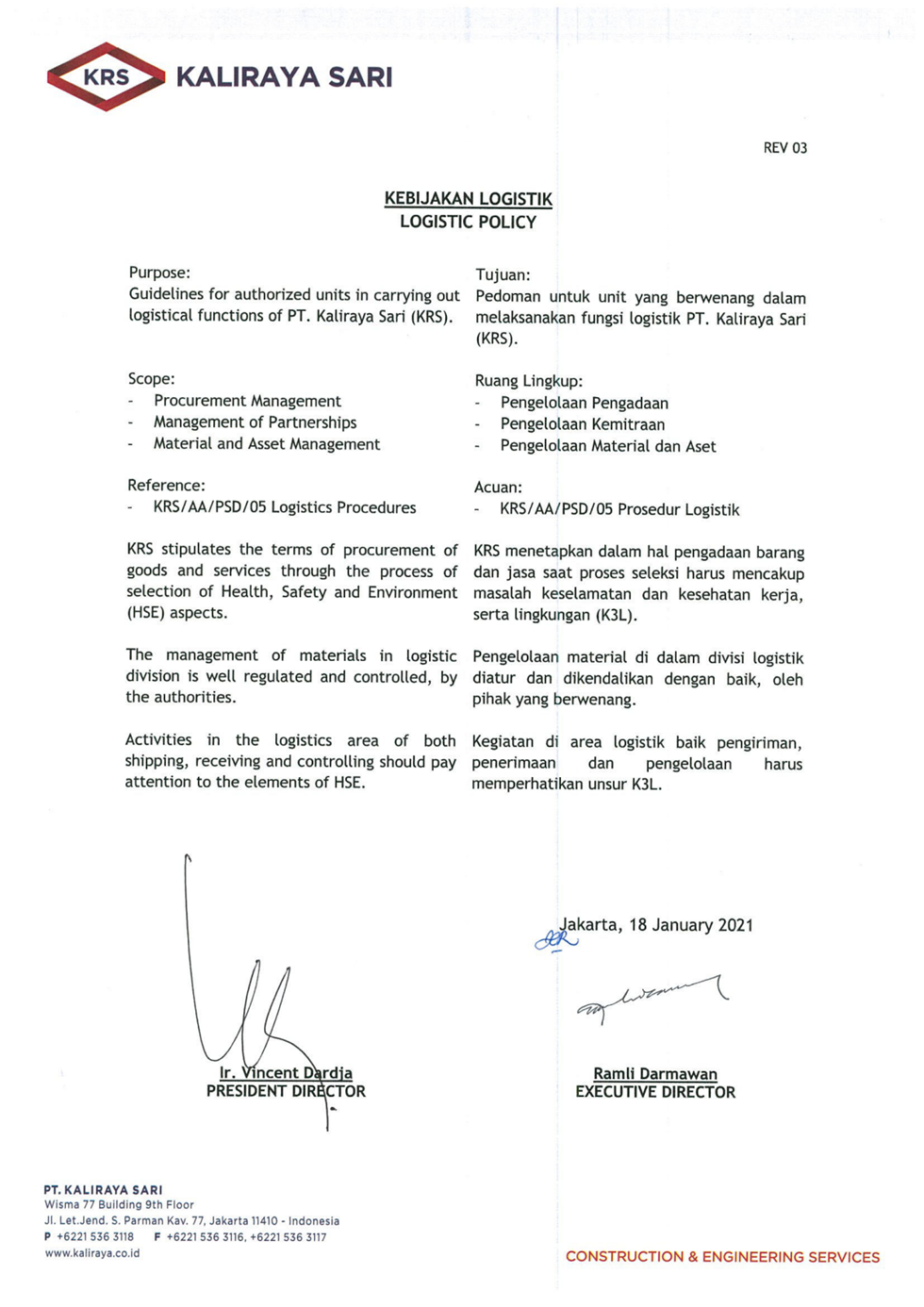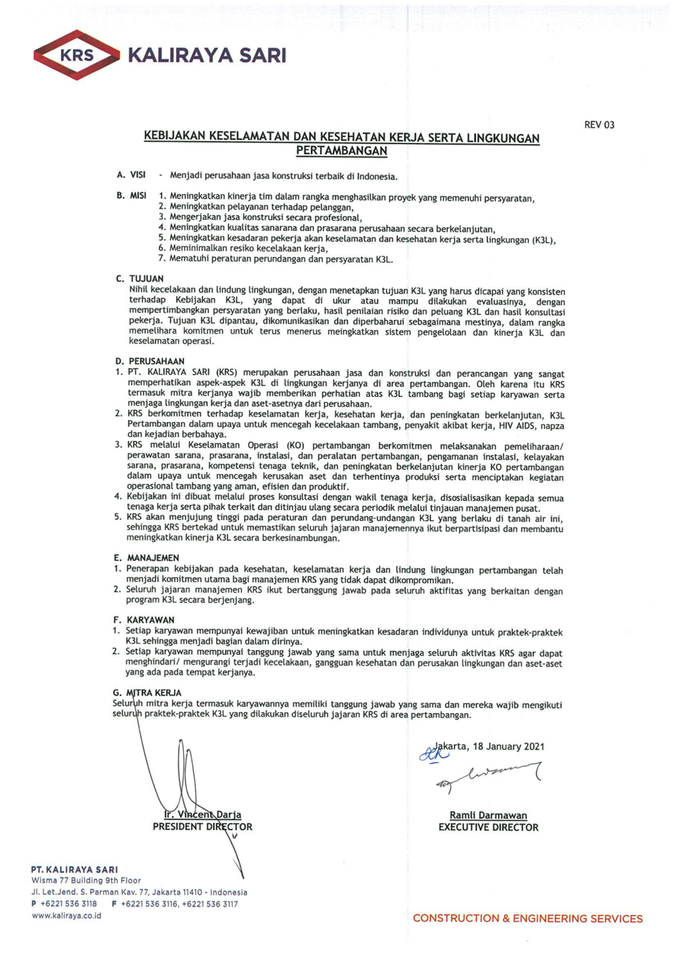 Kebijakan Keselamatan dan Kesehatan Kerja Serta Lingkungan Pertambangan