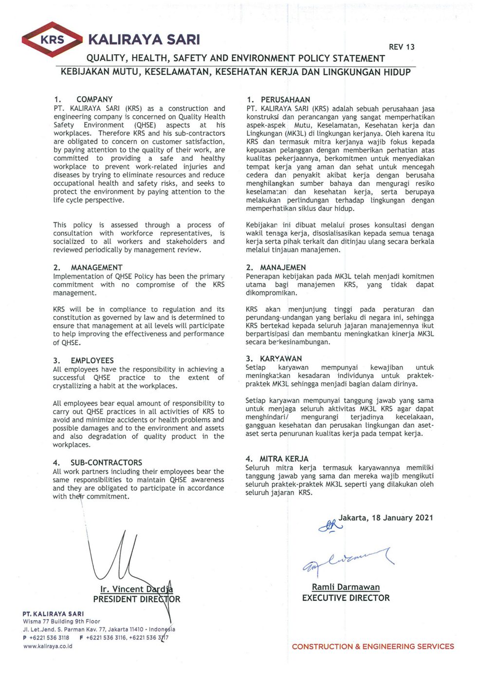 Quality, Health Safety and Environment Policy Statement